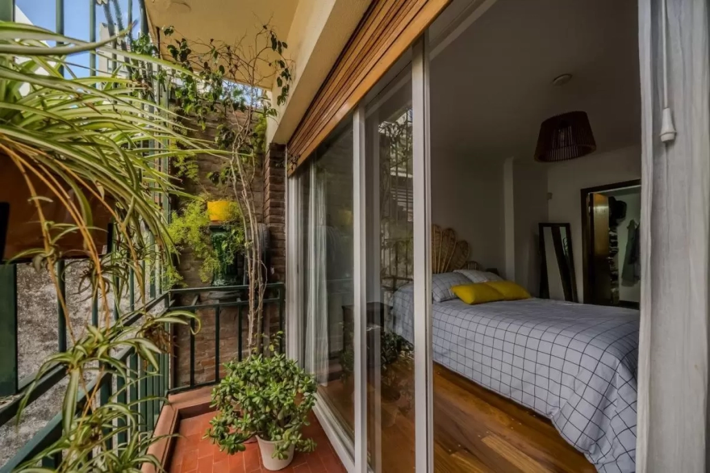 - El balcón corrido conecta el living comedor con el dormitorio principal y el segundo dormitorio.